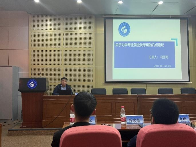校友高汝鑫介绍了从事计算结构动力学、随机振动和噪声分析以及动力学优化等方面工作的情况和感受。校友刘力源介绍了从事深部岩石力学与多场耦合机理方向开展科研工作的历程。校友冯国海从就业、深造和职业发展等方面分享经验。校友张洋、邹建超、侯中伟结合各自工作经历,为同学们提供了宝贵的职业发展建议,鼓励同学们要保持积极的心态,勇于面对挑战,不断提升自己的能力。在座的同学们针对目前学习、考研、职业发展规划等方面存在的疑惑与校友进行深入交流。