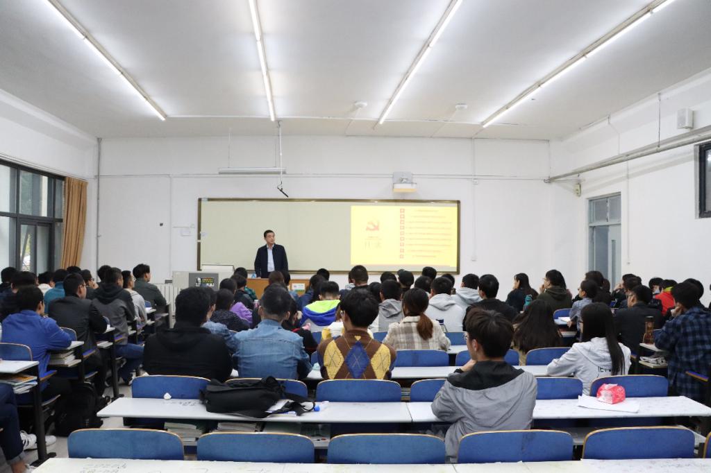 为认真贯彻落实习近平总书记关于“不忘初心、牢记使命”主题教育的重要指示精神,进一步增强学生党员的凝聚力和向心力。10月30日下午,矿业学院党委副书记兼副院长穆玉兵在S1-115为学生党员讲授“践行新思想,逐梦新时代”主题党课,全体学生党员聆听了党课。