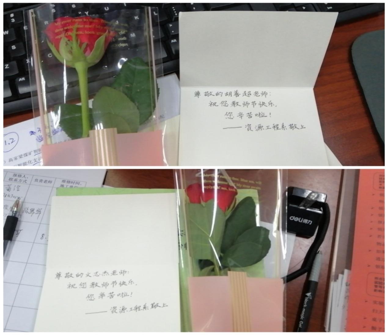 采矿工程系党支部、工业工程系党支部、力学系党支部分别邀请各系的资深老教授为青年教师们“传道授业解惑”,通过采用开展教师节座谈会、讲座等形式,共同庆祝第37个教师节。老教授们从学科发展、工作经历、育人初心等方面向青年教师传授经验和体会。青年教师们纷纷表示,要用自己的一言一行,践行教育初心和育人使命,充分感受教书育人的光荣感和幸福感。资源工程系党支部还为每一位教师送上祝福鲜花和卡片,激励老师们以昂扬的精神状态和务实的工作作风,教科相长,立德树人,把家国情怀永驻心中。