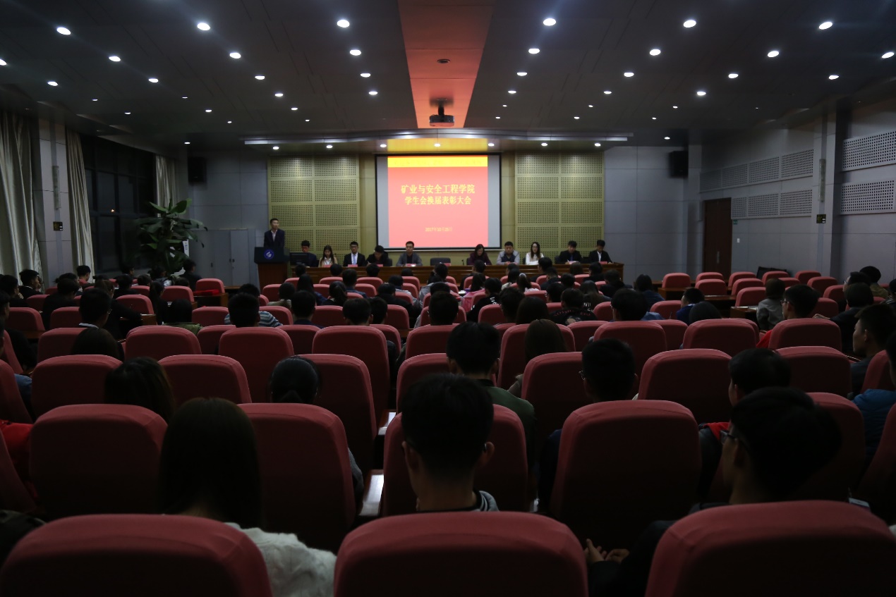 10月25日,矿业学院学生组织换届表彰大会在学院楼101报告厅召开。团委书记马鹤,团委老师郭磊、于海洋、周长龙、宗彩建、沈仲璇应邀出席,各学生组织主要成员参加会议。