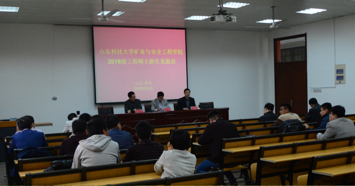 4月22日,矿业学院在学院楼425多媒体教室举办2016级工程硕士新生见面会,学院党委书记梁赛江、党委副书记兼副院长穆玉兵出席本次见面会,会议由党政办公室主任朱祝武主持。