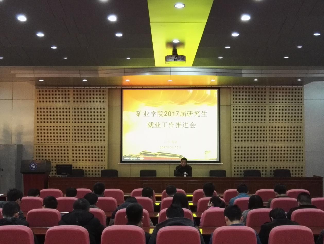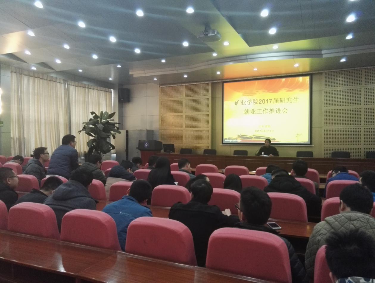 近日,矿业学院2017届毕业研究生就业工作推进会在学院101报告厅召开,会议由学院党委副书记穆玉兵主持,124名未就业研究生参加会议。