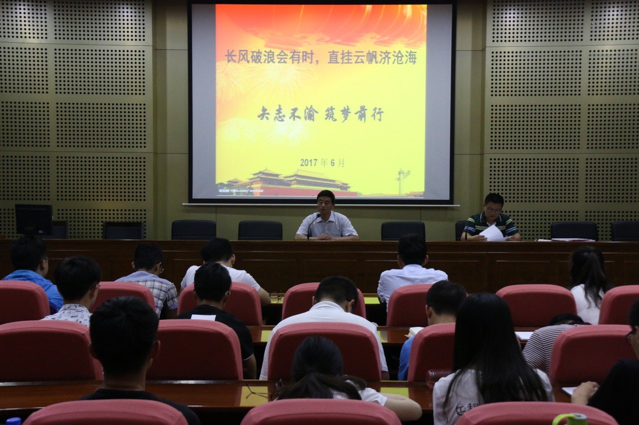 穆玉兵首先从中国共产党的发展历程入手,指出中国共产党团结带领全国各族人民风雨同舟,中国改革发展30年的成就证明中国的发展离不开中国共产党的领导。同时强调作为新时期的党员,我们要从容接过祖国发展的接力棒,面对历史的任务,明确责任,铭记党员身份,敢于担当,严于律己,做同学们学习和生活上的表率、做学院学生工作的桥头堡和排头兵,积极发挥先锋模范作用。