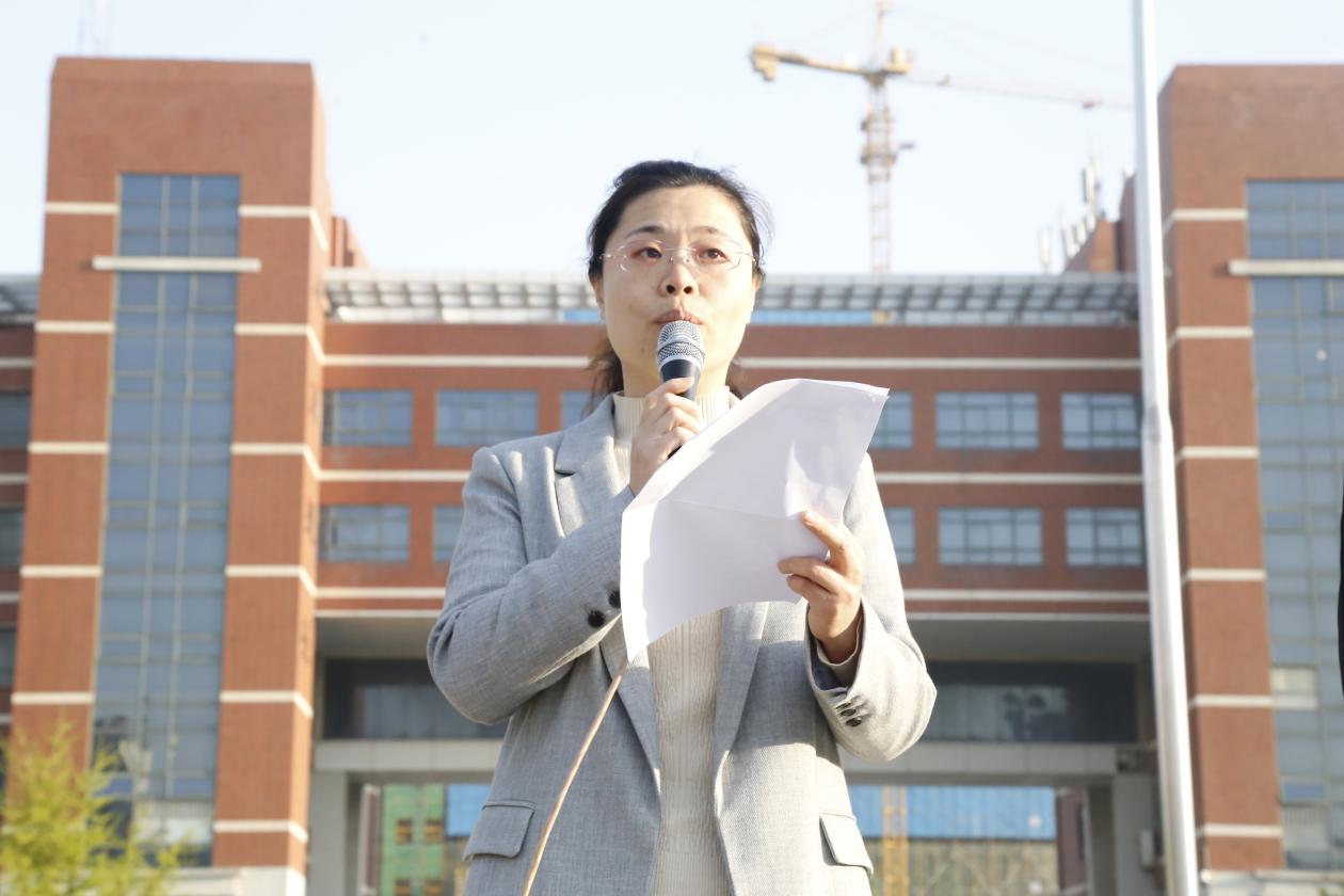 4月19日,成人电影 在泰山广场举行升国旗仪式暨“峥嵘百年路,砥砺踏歌行”党史学习教育、校史院史宣讲启动仪式,学院党委副书记兼副院长许琳出席仪式,成人电影 全体辅导员、全体同学参加。