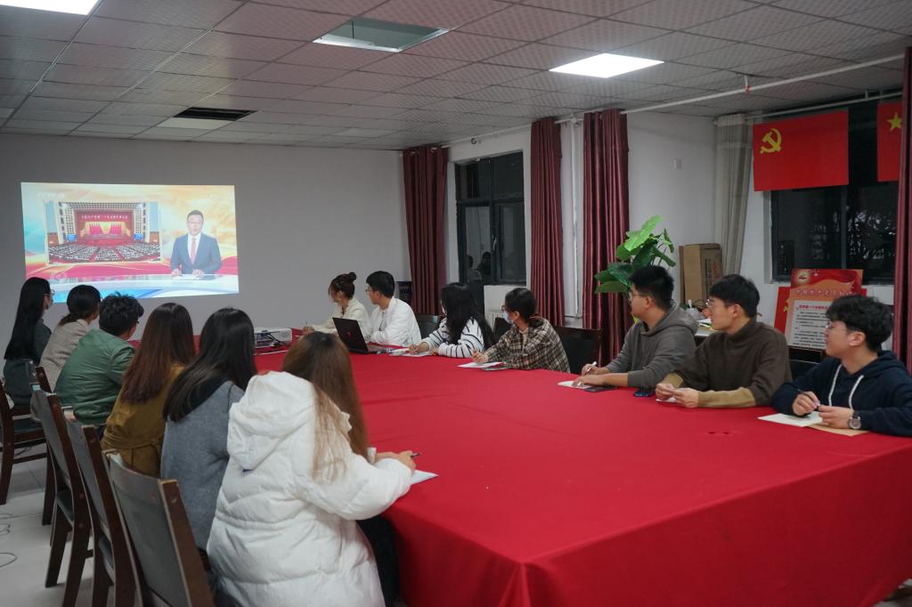 硕研2022级3班团支部在宿舍党员活动室观看了习近平总书记在党的二十大报告中寄语青年的讲话视频,非常振奋,备受鼓舞,纷纷表示,将深入学习贯彻党的二十大精神,为全面建设社会主义现代化国家、全面推进中华民族伟大复兴贡献青春力量。