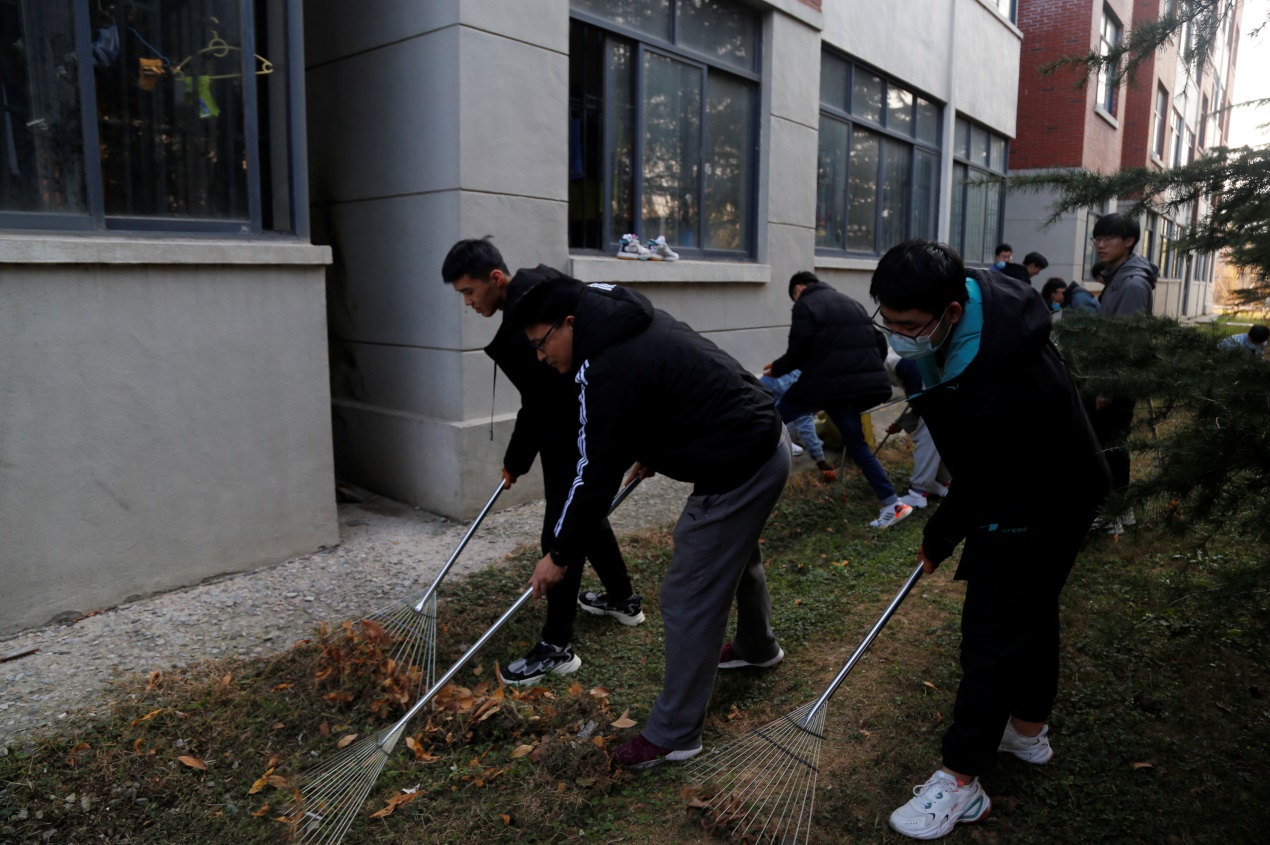 11日-14日,根据学校区域划分安排,成人电影 精心策划、提前筹备,组织百余名志愿者和教职工带着铁锨、扫帚、簸箕等工具,分别前往教学实验楼J4、S1及学生公寓C2、C17四周进行落叶清扫、非机动车摆放等服务。清扫过程中,学院领导亲自带队,全体师生齐心协力,配合默契,或铲积土、或扫落叶、或捡树枝,干得热火朝天。经过师生们的辛勤劳动,主干路面和停车区域的树枝和落叶全部清理干净,非机动车摆放整齐。学院领导还通过深入学生宿舍,有序按照分工对负责区域进行全方位的指导工作,督促清理一些比较隐蔽、平时容易被忽略的卫生死角,并叮嘱学生关掉长流水,努力建设节能低碳的绿色校园。