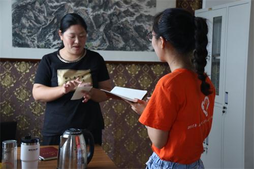 晨露团队首先来到胜利镇镇政府,与郯城团县委副书记兼胡一村第一书记李真、镇妇联主席王琰展开面对面访谈。采访中,李真从农村基础教育设施、师资力量配备、中小学第二课堂开展情况、政府针对儿童举办的相关活动、留守儿童现状及关怀政策等七个方面结合当地实际情况进行介绍。李真说道:“虽然现在我们农村基础教学设施还是比不上城里,但义务教育均衡化发展政策的大力推行和大量资金的投入,农村学校的教学条件已经得到极大改善,而且教师招考数量也在不断增加,师资力量在向农村倾斜,相信在不久的将来农村孩子将拥有和城里孩子一样的教育条件。”王琰则介绍了当地特有的“爱心妈妈”即结对帮扶和志愿者爱心服务等一系列针对留守儿童的关爱政策。队员们通过访谈了解到当地农村教育的现状,为下一步调研打下基础。
