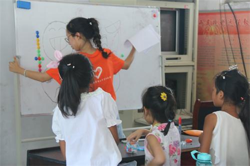 晨露三下乡社会实践团队联合星火公益支教团,在当地组织的马陵学堂为孩子们带来两场别开生面的心理教育、安全教育课。“心系阳光”心理健康教育课上队员们通过绘画、表演等多样化的形式向孩子们讲解了如何树立自信心,以正确的心态与他人交往,与他人分享自己的喜怒哀乐,通过“你画我猜”等小游戏引导孩子们正确表达自己的情绪,在向孩子们传授知识的同时增强孩子们团结互助的团队意识。安全教育课上队员们则利用“大家来找茬”的游戏让孩子们寻找图片中的安全隐患,并借此帮助孩子们丰富安全知识,增强安全意识。孩子们对于队员们的到来表现出极大的热情,课堂气氛十分活跃。