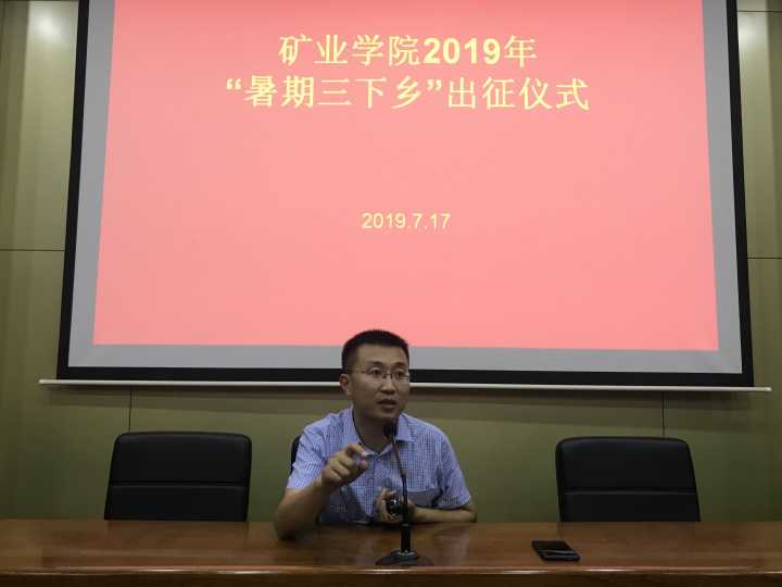 月17日,矿业学院在J4-101报告厅举行2019年暑期三下乡出征仪式。全体团委老师、各团队学生代表参加仪式。