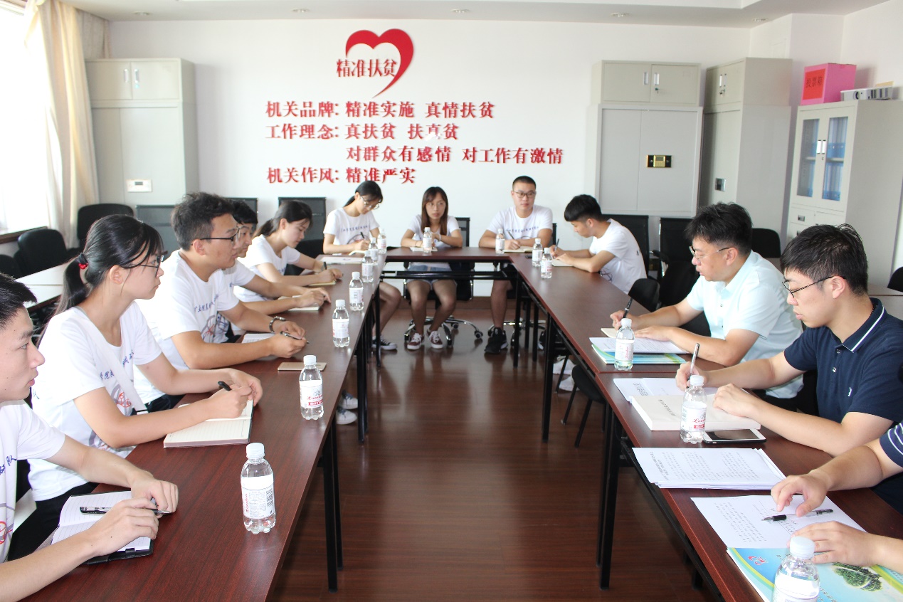 7月22日,矿业学院“晨曦”实践团队全体队员来到莱西市市政府,并与扶贫办张志先主任取得联系,在与张主任长达两个小时的交流中,团队对莱西脱贫现状以及以取得的成效有了更深入的了解。张主任告诉我们,近年来,莱西市动态调整核定贫困(享受)政策贫困户2304户、4033人,实现并巩固了建档立卡贫困户脱贫,完成了93个贫困村和经济薄弱村脱贫摘帽任务;基本完成了4个经济薄弱镇摘帽任务,脱贫长效机制初步建立,农村脱贫攻坚任务基本完成。张主任还介绍到:带动莱西农民脱贫致富的高效农副产品主要包括:马连庄甜瓜、河头店苹果、日庄葡萄,目前已经实现第一产业与第三产业的结合,例如定期举办瓜果节会,划定采摘庄园,进行瓜果文化宣传等。