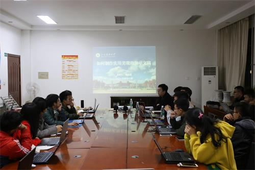 刘勇向同学们演示了图片轮廓的裁剪、SmartArt模型的制作、文档素材的插入等入门技巧;肖建成着重从实用性、简洁性、美观性、创造性等方面教会同学们“如何制作美观的演示文稿”;张鉴愿则从动画和颜色搭配等方面展示“如何制作清晰、简洁和视觉化的演示文稿”;于海文向大家介绍了PS软件中选框工具、套索工具、钢笔工具等工具使用方法,并为同学们演示了图像合成、图像处理、滤镜特效、羽化、调色及亮度等方面的具体使用。培训会的开展内容丰富、实用性强,切实提高了同学们的软件操作水平,受到了同学们的一致好评。
