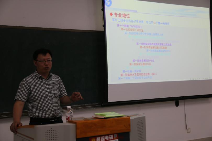 采矿系主任张培森为新生讲解
