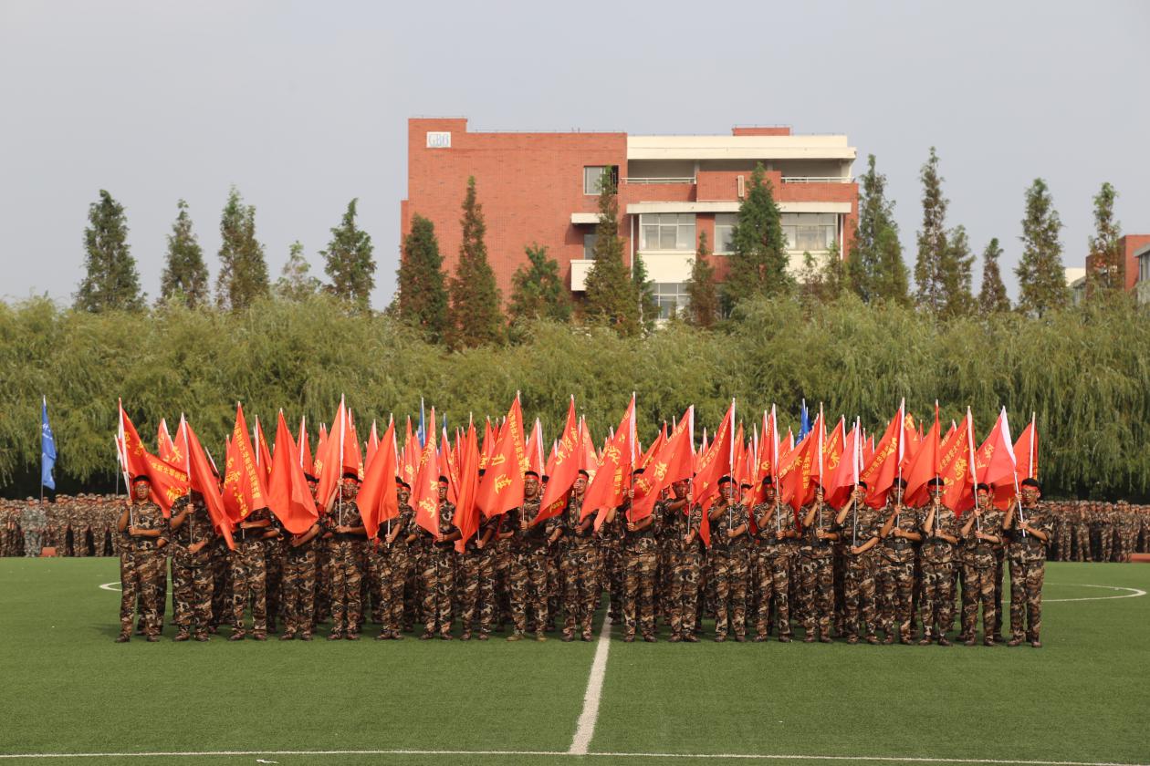 彩旗方队表演是矿业学院在军训汇演仪式上的另一大亮点。各学院军训方队表演结束后,由数百名身着迷彩、手拿红旗的健儿们,喊着口号,集聚在操场中央,挺立如松。在教官的统一指挥下,他们随着音乐摆出各种造型,口号声响彻云霄,手中的旗帜舞动,像一团飞动而热情的火苗,引发现场观众的雷动掌声,更展示出矿院新生的青春活力!