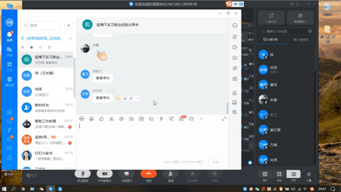 利用腾讯会议平台开展五四专题:为青年护航——释放青春能量,点亮就业梦想分享会。硕研18-2班研究生徐添担任主讲人,学院200余名本科生参加了分享会。