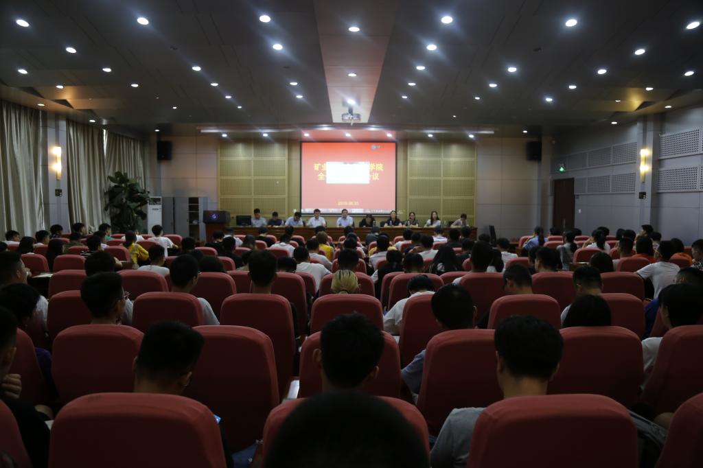 8月25日,矿业学院全体学生干部大会在J4-101报告厅召开,学院党委副书记兼副院长穆玉兵、团委书记马鹤以及全体辅导员老师出席会议,矿业学院主要学生干部参加会议。