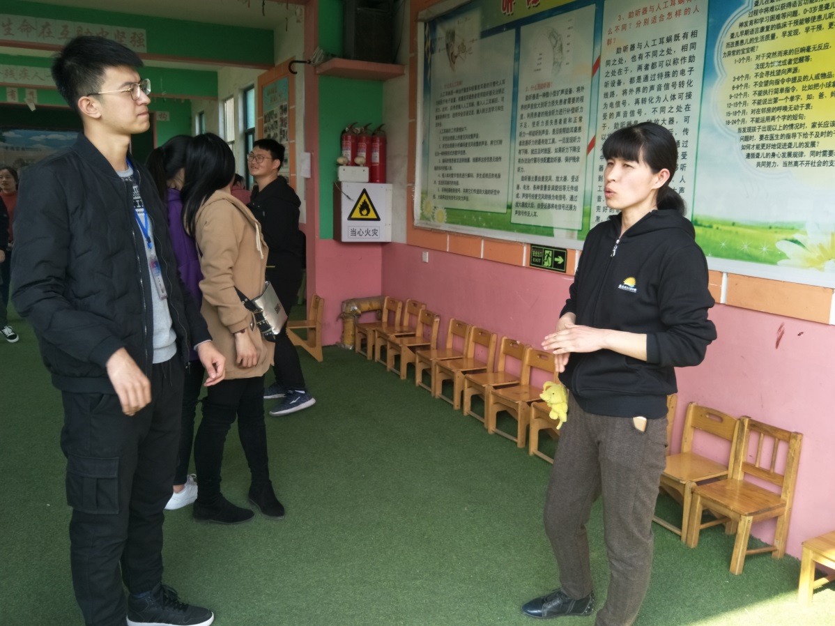 3月16日,矿业学院青年志愿者协会携手黄海学院同学前往胶南聋哑儿童语训中心看望聋哑儿童。