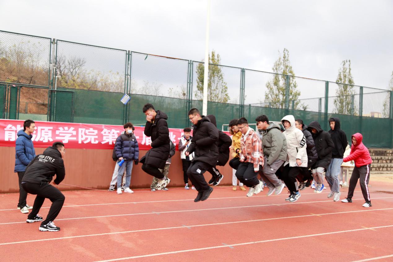 参赛各队成员精神饱满,斗志昂扬。赛前参赛选手进行充分热身准备,甩绳员进行甩空绳练习。哨声响起,队员配合大绳以飞快速度跳起,摇绳员全神贯注,努力配合跳绳选手节奏,减少失误。跳绳选手动作干净利落,齐心协力从翻飞的绳子中跃过。队伍成员间互相鼓励,加油呐喊。经过激烈的角逐,采矿一班夺得第一名,采矿二班获得第二名,工力一班获得第三名。
