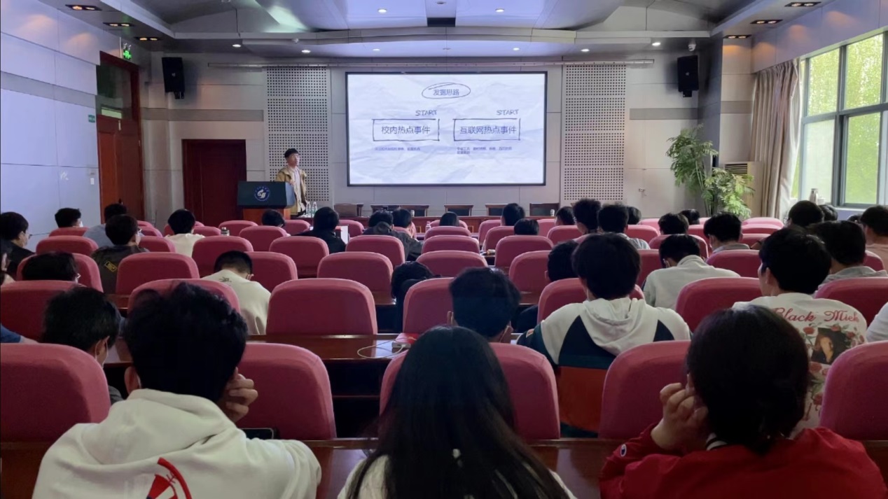 杨文超以“新媒体拍摄及运营”为题,对新媒体素养这一概念进行全面的阐述。他从如何发掘校内热点事件和互联网热点事件、如何更好的了解平台机制利用平台等方面,介绍了流量算法、平台的评分机制、推送机制等内容。此外,他还分享了关于构图、运镜等实用的手机拍摄技巧。