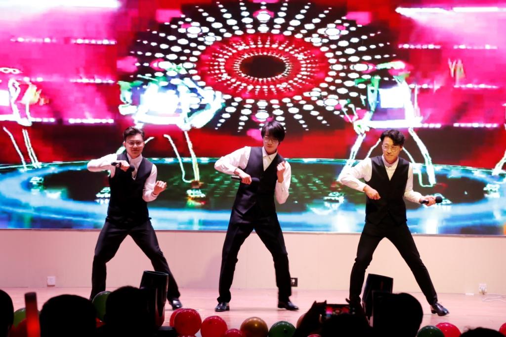 学院教师带来的节目精彩纷呈,由青年教师蒋力帅和李家亮带来的歌曲《千里之外》悠扬动听,让人沉醉其中,青年教师范坤坤和声乐队带来的《你是人家四月天》带大家重温了成人电影 的辉煌历程。中场游戏飞花令让同学们和辅导员在欢声笑语中拉进了距离。采矿系、资源系教师与大艺团主朗队带来的朗诵《赓续新篇 扬帆远航》气势磅礴,歌颂了中国共产党百年的恢宏史诗。晚会在优美感人的大合唱《光明》中画上圆满的句号。