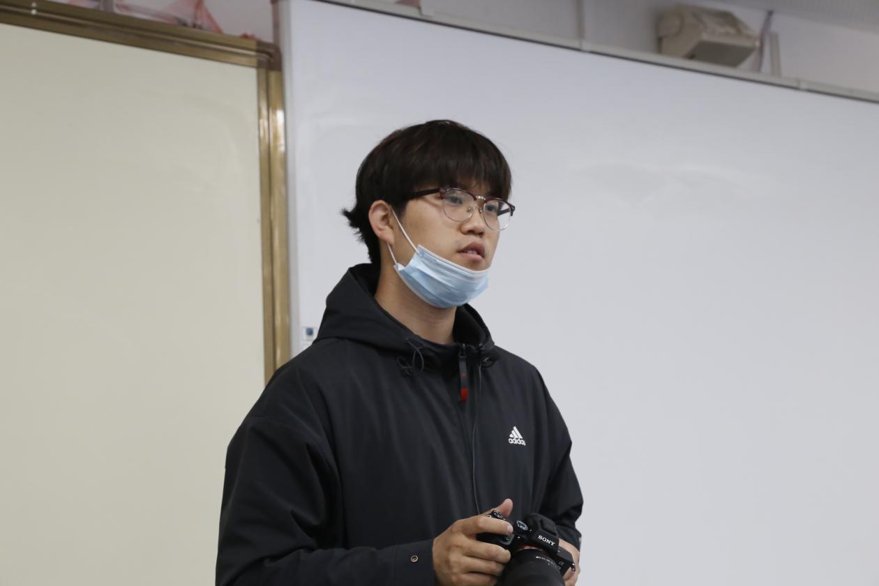 培训会上,薄腾主要从基础摄影理论和实用摄影技巧两方面向与会成员进行讲解。他详细介绍了照相机光圈的大小、快门速度的快慢、感光度的选择、光线的运用等知识,针对怎样将摄影技巧运用到高校新闻摄影中,从而更好的拍摄人物画面、和谐的场景、精彩纷呈的活动等方面与大家进行了分享,让同学们受益匪浅。在稳定器使用的讲解中,他邀请同学们上台演示,形象地介绍了稳定器平移轴和俯仰轴的区别,并鼓励大家动手实践,逐步掌握操作方法。