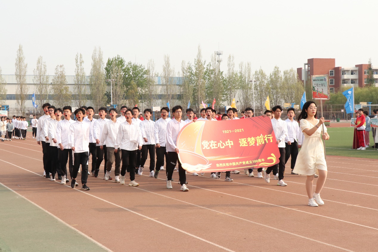 运动会当天,操场上彩旗飘扬,现场气氛热烈。伴随着运动会进行曲的响起,各方队以整齐的步伐、飒爽的风貌进入操场,他们个个面带笑容,昂首阔步,展现出青年特有的朝气与活力。
