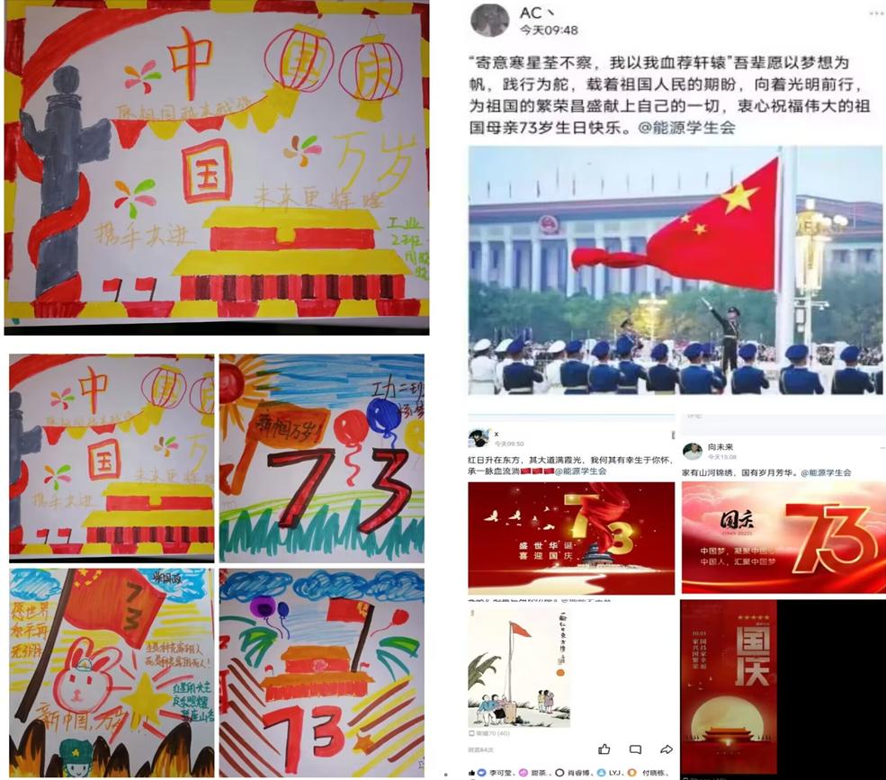 为庆祝中华人民共和国成立73周年,加强对团员的思想政治教育,团结广大团员群众,引领广大团员坚定跟党走,建功新时代,以昂扬姿态和优异成绩迎接党的二十大胜利召开,10月3日至10月4日,成人电影 学生会办公室开展“青春心向党,强国有我在”十一特别活动。