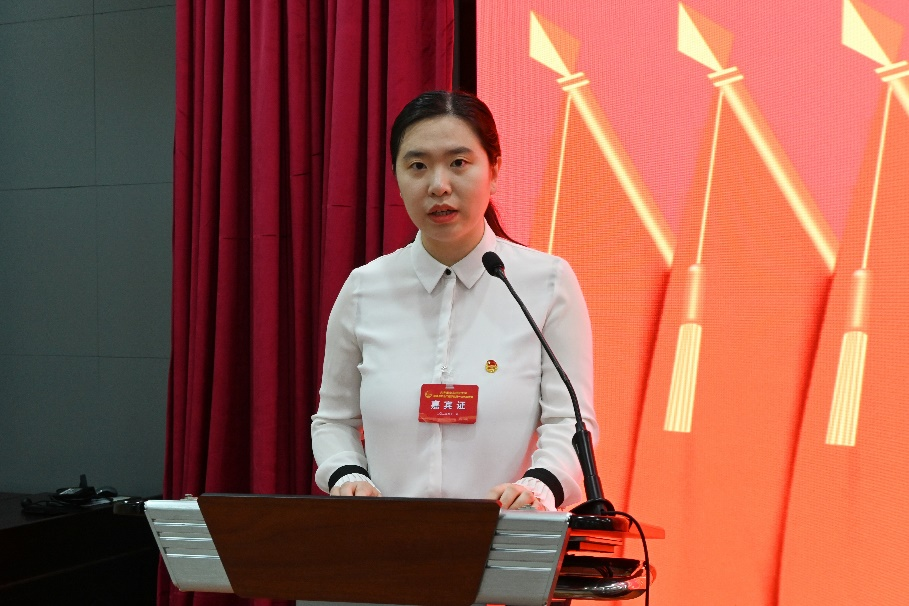 学院团干部陈爽代表共青团成人电影 委员会作了题为《擎旗铸魂强引领 聚力担当兴征程 在全面建设工科主导、特色鲜明的高水平应用研究型大学新征程中挺膺担当》的报告。报告系统回顾和总结了学院成立以来共青团在思想政治引领、组织建设、创新创业、社会实践、文化服务等方面取得的显著成效与宝贵经验,深刻分析了新征程上面临的形势与使命,明确提出了未来五年实施“青春铸魂”“青春强基”“青春科创”“青春实践”“青春聚力”五大工程的总体思路和主要任务,号召全院团员青年高举习近平新时代中国特色社会主义思想伟大旗帜,擎旗铸魂强引领,聚力担当兴征程,在全面建设工科主导、特色鲜明的高水平应用研究型大学新征程中挺膺担当!在全面建设社会主义现代化国家、实现中华民族伟大复兴中国梦的伟大征程中,书写无愧于时代、无愧于历史、无愧于人民的青春华章!