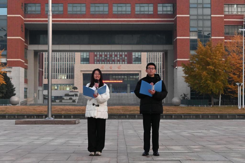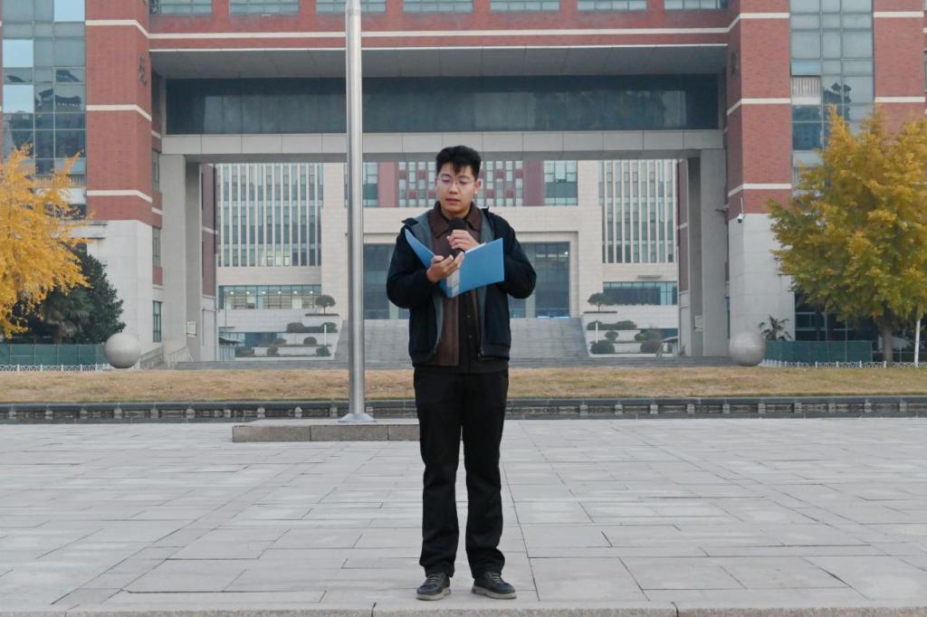 11月24日清晨,成人电影 在泰山广场举行“共绘‘十五五’蓝图,青年担当展风采”主题升旗仪式。学院学工办主任、团委书记周尚涛,全体辅导员老师及全院学生参加本次升旗仪式。