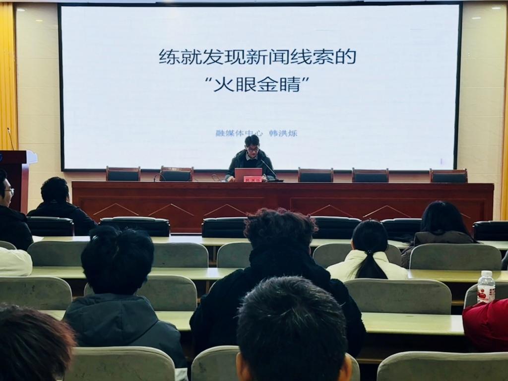 韩洪烁以“练就发现新闻线索的‘火眼金睛’”为题,聚焦于新闻生产链条的起点——线索发现。他指出,优质的新闻线索是产出高质量宣传作品的基础,而“发现”的背后,是思想深度、观察角度和对校院中心工作熟悉程度的综合体现。他通过大量正反案例对比,深度解析了如何从教学科研、管理服务、校园文化、学生活动中挖掘鲜活素材。他要求,宣传骨干既要关注“大事要事”,更要善于发现“小事新事”,养成随时观察、随时记录、随时思考的习惯。