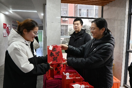 活动现场秩序井然,情意融融。同学们接过这份满载心意的“能量包”,纷纷表示惊喜与感动。不少同学谈到,学院大家庭的关怀让他们在冲刺阶段倍感鼓舞,不仅缓解了备考压力,也增强了迎考信心。