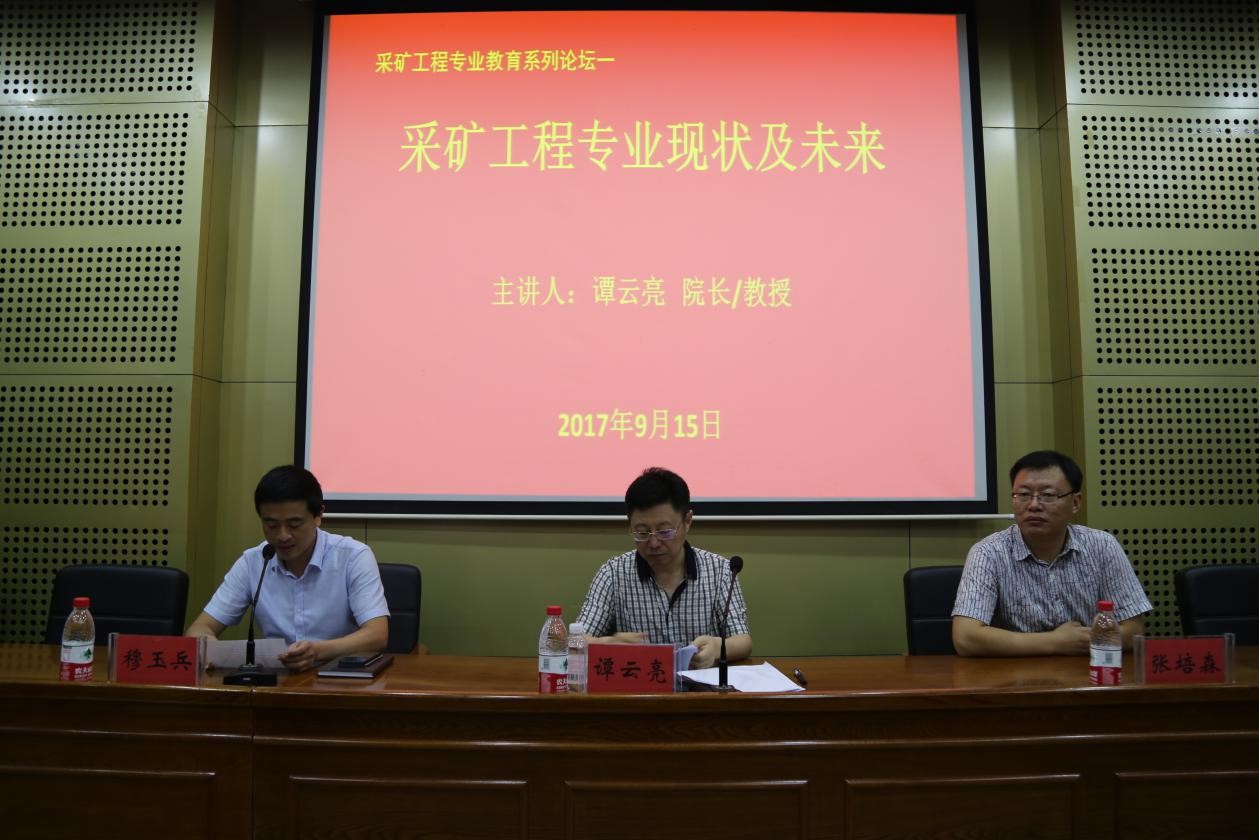 9月15日,矿业学院在学院楼101会议室举行采矿工程专业专题报告会,院长谭云亮就“采矿工程专业现状及将来”给同学们呈现了一堂精彩的报告。采矿系主任张培森和全体采矿工程专业新生参加了报告会,会议由党委副书记兼副院长穆玉兵主持。