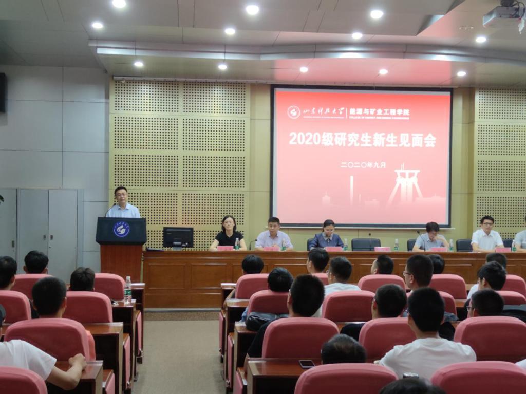 9月11日下午,学院在J4-101报告厅举办2020级新生见面会。院长陈绍杰、学院党委副书记兼副院长许琳、副院长赵同彬、教师代表宁建国以及辅导员老师参加了见面会。陈绍杰致欢迎词,向新生介绍了学院发展建设现状,并语重心长寄语新生:要走别人未走过的路,在未有前人开拓的领域中,发挥创新能力勇攀高峰;要厚积薄发,沉下心境完成量变到质变的飞跃,在学术研究中不断摸索前行;要审时度势,在精进学术的同时洞察时代变革,在时代的巨变洪流中坚定理想信念,迎头追赶。教师代表、采矿工程系主任宁建国对新生的到来表示热烈欢迎,希望同学们不畏劳苦、努力付出,用汗水去浇灌和滋养理想之树,给大家以极大的鼓舞和鞭策。新生代表李鑫鹏代表研究生新生表达了对学校和学院的感谢,对研究生生活进行了展望,呼吁全体同学在新的跑道上不断进步,超越自我!