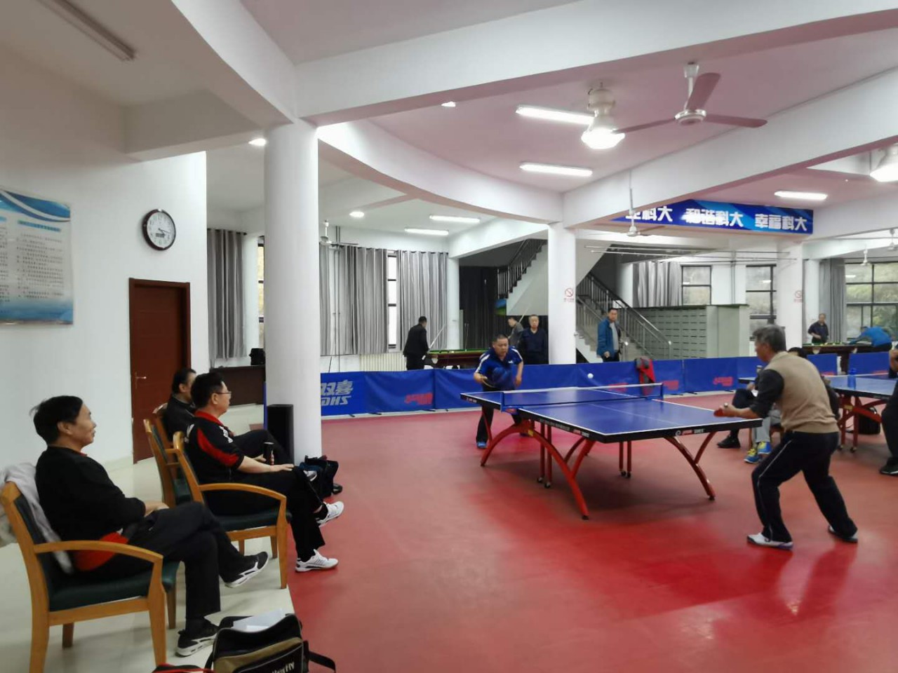 11月1日,成人电影 乒乓球协会与离退休教工、机关代表队乒乓球友谊赛在教职工之家拉开帷幕。比赛分男女团体赛,其中男子组为成人电影 乒协(范坤坤、刘伟韬、谭云亮、吴士良、秦忠诚)对阵离退休教工代表队(马小隆、王世范、万殿茂、范炜琳、王建新),女子组比赛为成人电影 乒协(许琳、王蕊、傅颖霞)对阵机关代表队(徐丽、亓文洁、闫丽)。男子团体赛成人电影 3:2战胜离退休教工代表队,女子团体赛机关代表队2:1战胜成人电影 代表队。