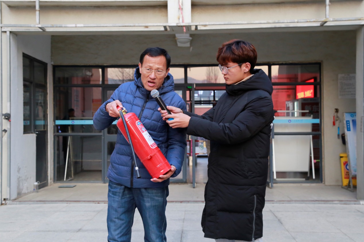 许琳发表讲话,她指出,提高学生的安全应急能力、增强学生的消防安全意识对当代大学生具有重要意义。大学生应充分了解必要的消防知识,在意外情况发生时能够进行自我保护。赵洋结合近年来各高校宿舍发生的触目惊心的火灾案例,介绍了公寓消防安全知识,阐述了使用电炉、电锅、吹风机、热得快、电热褥、电熨斗等大功率电器及非安全电器存在的火灾隐患,从思想上真正筑起安全防线。李灿军对扑灭初期火灾、逃生技巧、自救方法等进行了详细介绍,他强调,灭火器的使用要牢记“拉栓、抽管、灭火”的“三步走”方法,对准火焰根部喷射,直至火焰熄灭。