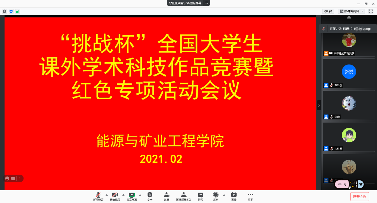 此次线上会议的举办,提高了同学们对“挑战杯”竞赛的备战意识,进一步凝聚学院科技创新氛围,促进学院创新成果不断进步,勇攀高峰。(通讯:宗彩建、韩新悦 责编:肖宜辉 审核:许琳)
