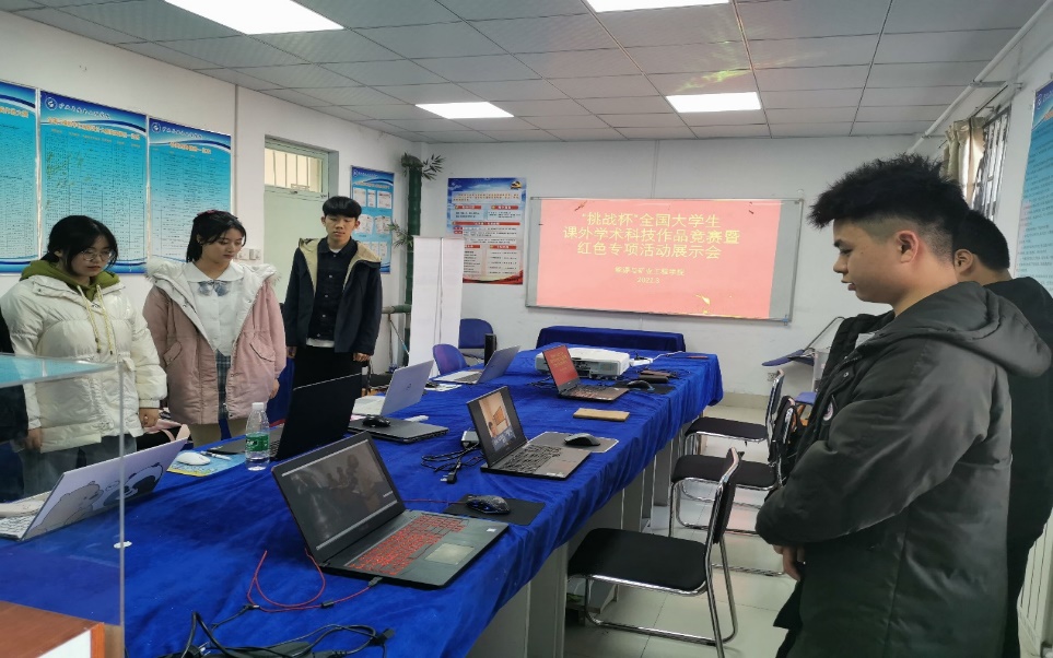 评审会结束后,学院为扩大红色专项活动宣传范围,在公寓科技创新活动室举办优秀作品展览会,动员同学们进行学习参观;同时利用腾讯会议展示优秀视频,进一步辐射全院同学。