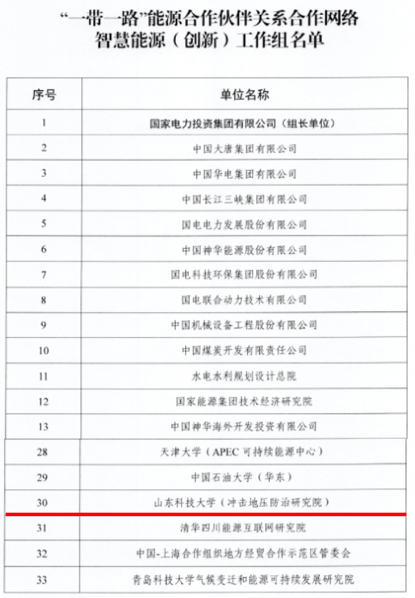 近日,国家能源局发布关于成立“一带一路”能源合作伙伴关系合作网络的通知,成人电影 (冲击地压防治研究院)入选“一带一路”能源合作伙伴关系合作网络智慧能源(创新)和高校(青年)两个工作组成员单位。