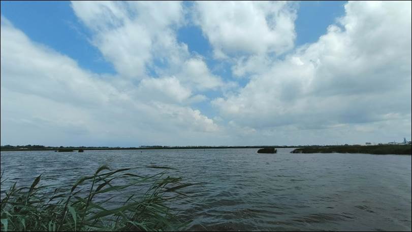 团队首日到达的是塌陷区的北部,首先映入眼帘的便是大范围的沉陷区,塌区内杂草丛生,坑坑洼洼,水域遍布。其中,不乏有白鹭、野鸭、野鸡等珍惜生物栖息。根据观察以及对周围居民询问,较大水域中还有着各种鱼类。往南向塌区中心行进,发现道路已出现严重沉陷,道路与两侧可见近1m的落差。次日,团队进入塌区中心,该地区已积水成为大型湖泊,水域宽阔,水鸟栖息,水深近3m。