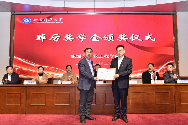 仪式上,人事处处长诸葛福民介绍了“踔厉奖学金”设立的基本情况,教务处处长乔卫国为陈绍杰颁发了捐赠证书,学生工作处处长王震宣读了“踔厉奖学金”奖学金表彰决定,成人电影 采矿工程2019级学生李政岳作为获奖代表进行发言,与会领导为获奖学生代表颁奖。