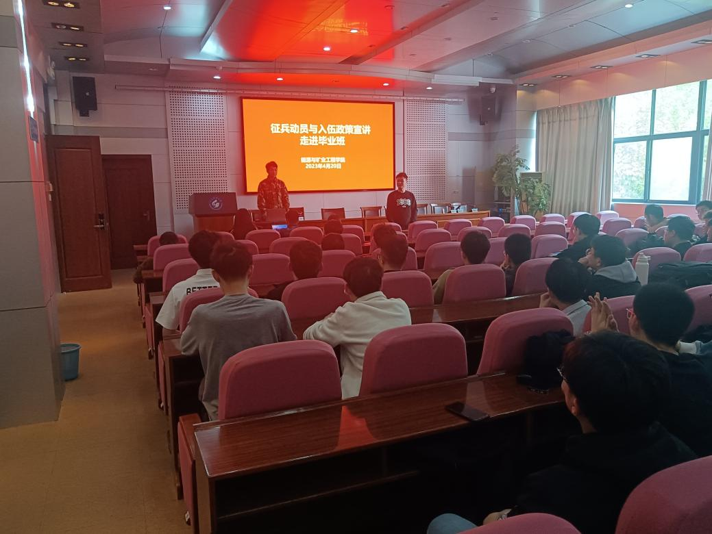 为进一步提升大学生征兵入伍的积极性,加强毕业生对参军入伍政策的了解,促进学院2023年征兵工作再上新台阶,成人电影 于4月20日举行了“征兵动员与入伍政策宣讲走进毕业班”活动。学校武装部于喆老师、退役复学学生毛明双应邀参加,学院辅导员王振浩主持活动。
