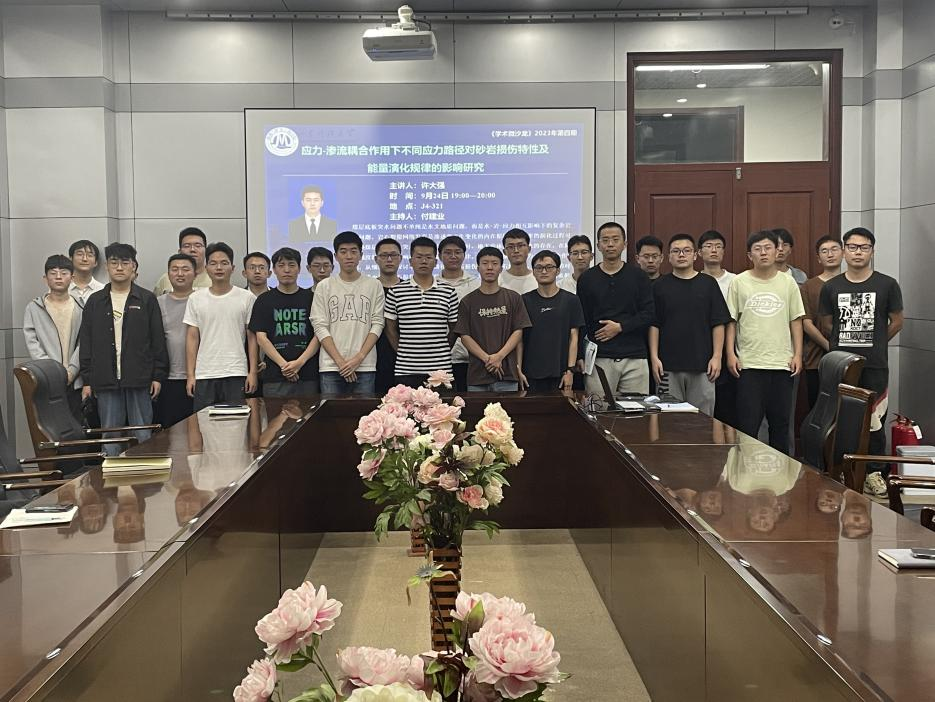 9月24日,由成人电影 研究生会主办的第4期研究生学术微沙龙“应力-渗流耦合作用下不同应力路径对砂岩损伤特性及能量演化规律的影响研究”在J4-321成功举办。本期学术微沙龙活动邀请成人电影 优秀硕士研究生许大强作主题报告,学院研究相关方向的研究生参加,活动由研究生会执行主席付建业主持。