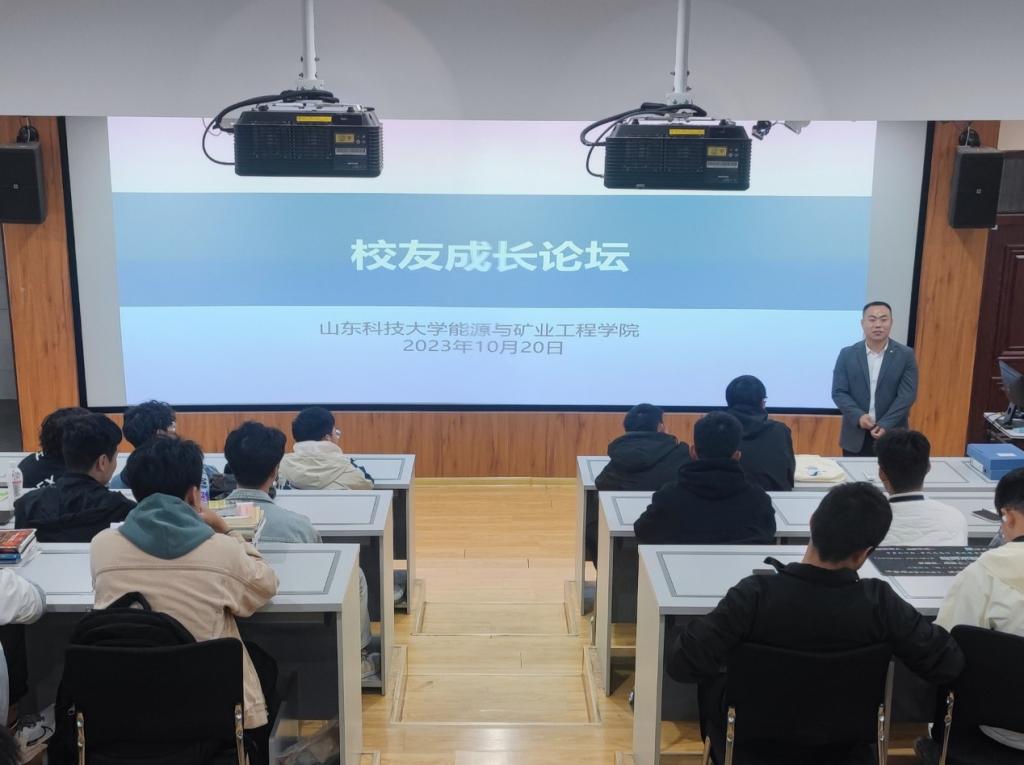 近日,成人电影 在S1-119举办校友成长论坛。采矿工程2011级校友、宁阳县高新技术产业开发区管委会副主任曹斌,为学生作“思源致远,励志奋进——职业发展规划分享”专题报告。报告会由辅导员老师宗彩建主持。