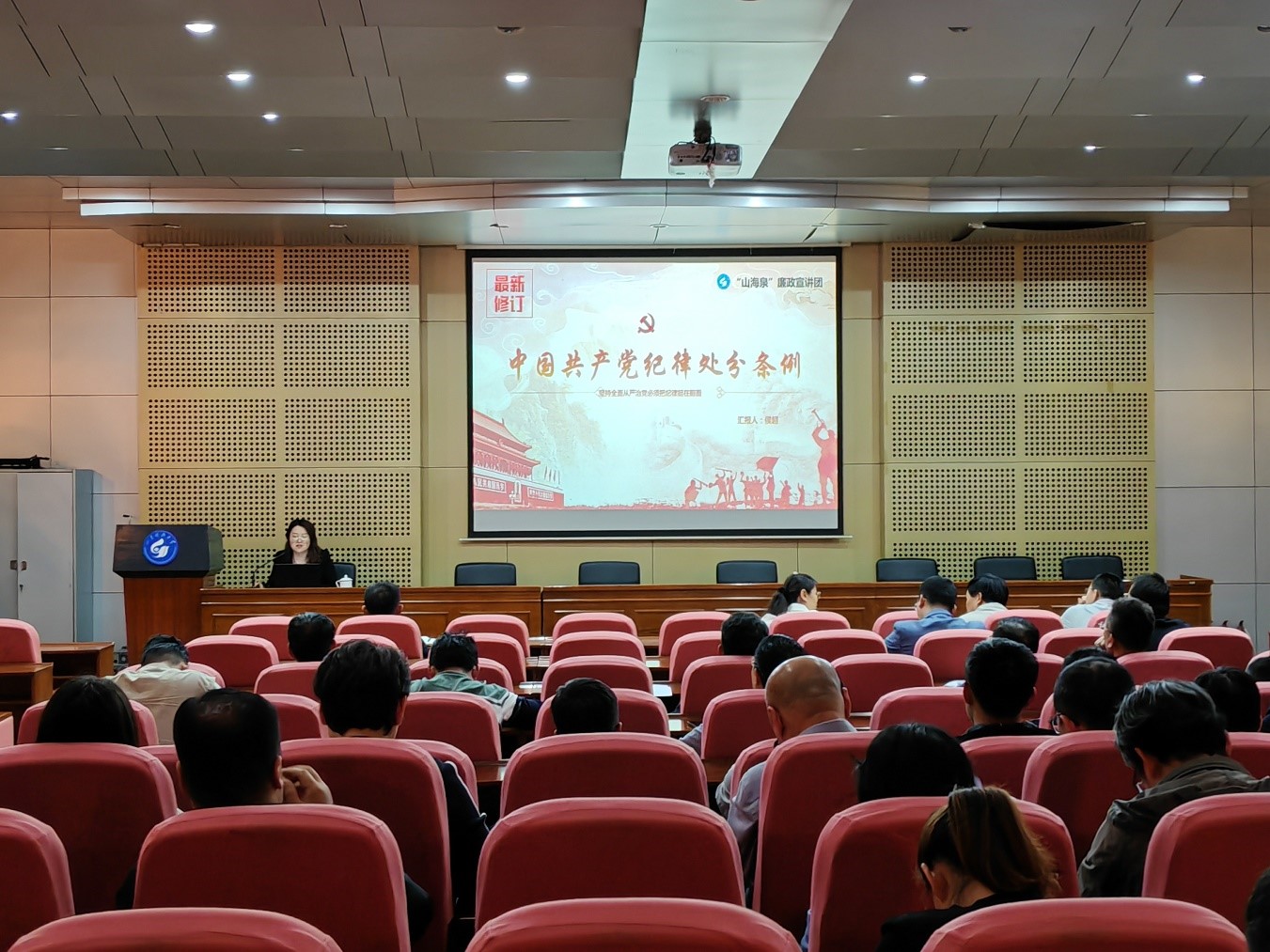 侯超以《中国共产党纪律处分条例》的历次修订的背景和意义展开,对《中国共产党纪律处分条例》修订的突出特点深入剖析,结合典型案例,深度解读了《中国共产党纪律处分条例》新增或修改的重点条文,对学校纪委的工作相关内容和流程进行了全面介绍。