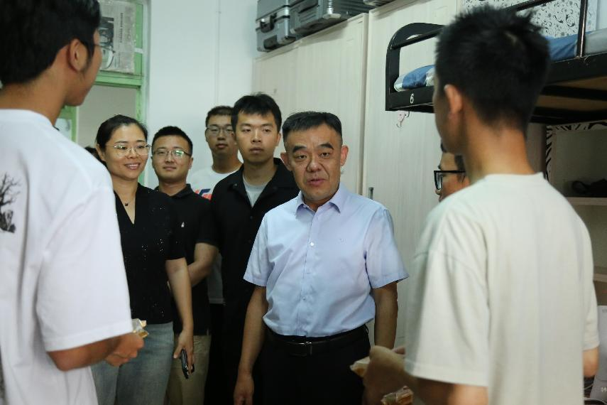 走访期间,卞西春亲切慰问了新生入学的适应情况并鼓励新生尽快融入大学生活,做好学业和生涯规划,以积极向上的心态面对人生新阶段的新生活、新挑战。他对新生同学们在军训中展现出的坚韧不拔和奋发向上的精神风貌给予了肯定,也借此机会向同学们传达了家国情怀的重要性,鼓励大家要将军训中学到的纪律性、团队精神和爱国情怀融入到日常的学习和生活中,为接下来的大学生活打下坚实的基础。他将充满美好祝愿的月饼和慰问品亲手交到每位学生手中,传递了学院对学子们的深情关怀。