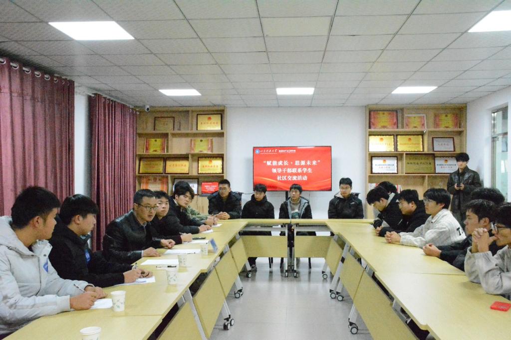 交流过程中,各班学生代表分别汇报了自领导干部深入基层工作开展以来班级各项工作的开展情况及同学们的思想动态,并提出当前同学们在学业发展、职业规划、生活适应等方面存在的困惑和疑问。