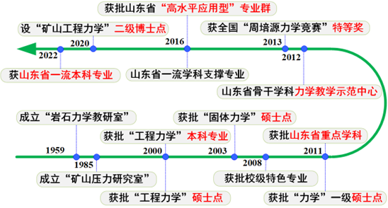 成人电影 工程力学专业传承于建校之初成立的岩石力学教研室(陈子荫教授、魏悦广院士曾任教于此)和宋振骐院士牵头成立的矿山压力研究所。成人电影 工程力学专业是山东省首批设置该本科专业的高校之一,2000年获批工程力学硕士点、2003年获批固体力学硕士点、2011年获批力学一级硕士点,2022年设置二级博士点方向。2016年专业获批共建山东省“高水平应用型”重点专业群,2022年入选山东省一流本科专业建设点。
