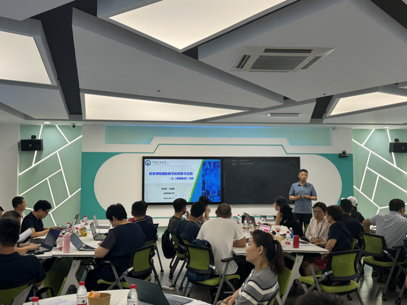 活动特邀中国石油大学(华东)理学院孙建国老师作专题分享。孙建国以《高等数学》课程为实践案例,围绕“智慧课程辅助教学的探索与实践”主题,从课程资源数字化建设、AI工具在课堂互动与课后辅导中的应用、学生学习数据的精准分析等方面,详细讲解了如何借助智慧技术破解传统教学痛点。他表示,技术应用始终要服务于“立德树人”根本任务,在提升教学效率的同时,更要注重对学生价值观的引导和全面发展的促进,体现了教师在信息化环境下的责任与担当。
