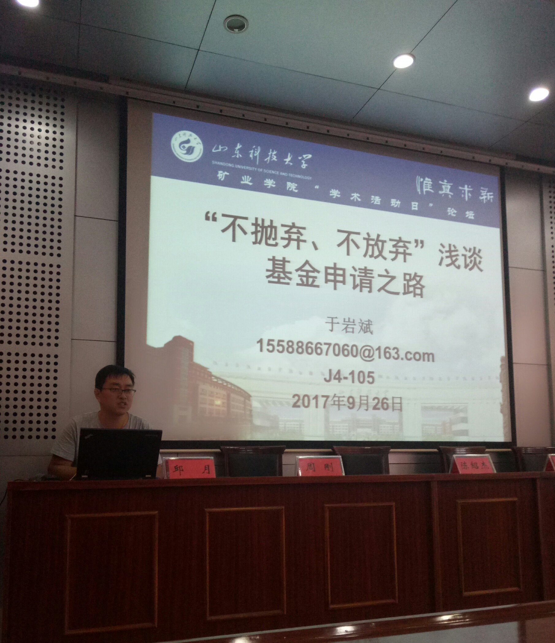 9月26日,矿业与安全工程学院在319会议室召开“学术活动日”第十期讲坛。会议由陈军涛主持,学院教师陈绍杰、周刚、邱月、于岩斌先后作了题为“石膏采空区失稳致灾机理及塌陷防治”、“抽丝剥茧,庖丁解牛——国家自然科学基金申报经验分享汇报”、“山东省自然科学基金申报体会”、“‘不抛弃、不放弃’浅谈基金申请之路”的报告。学院老师及采矿、安全等专业的80余名博士、硕士研究生参加此次学术会议。