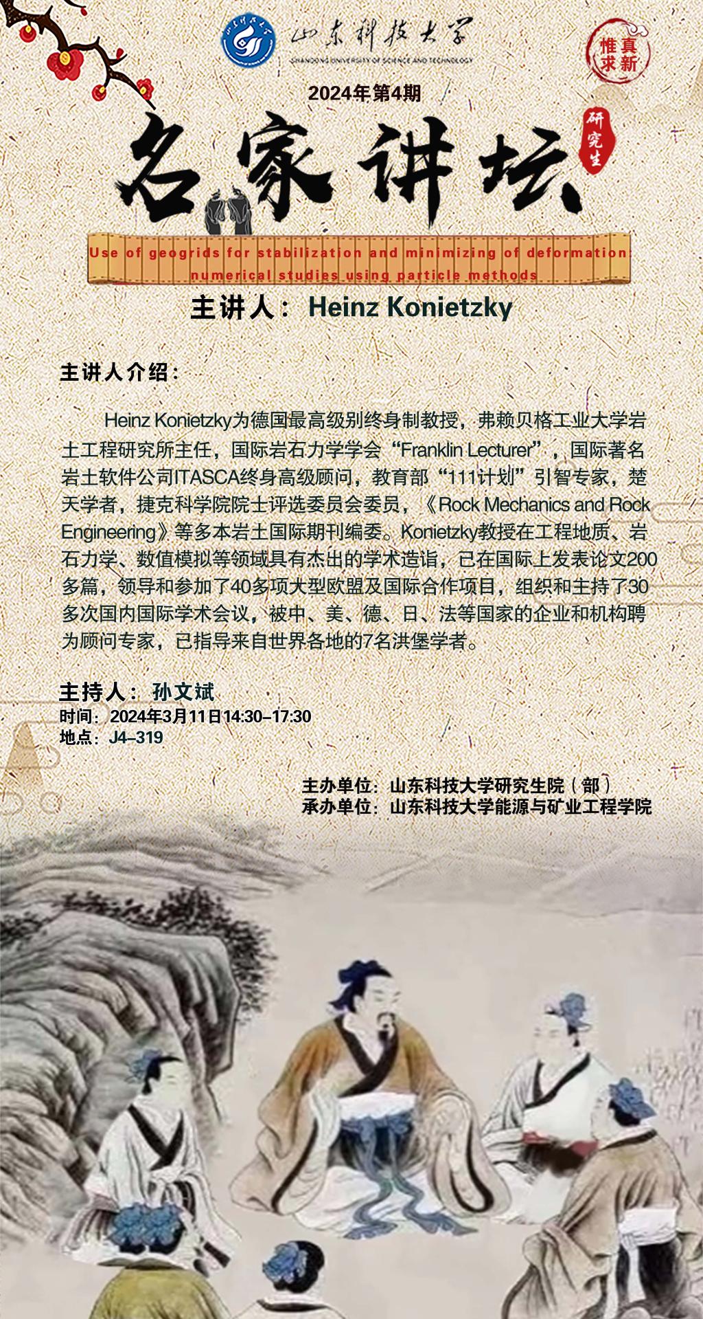 “名家讲坛”2024年第4期:Use of geogrids for stabilization and minimizing of deformation numerical studies using particle methods