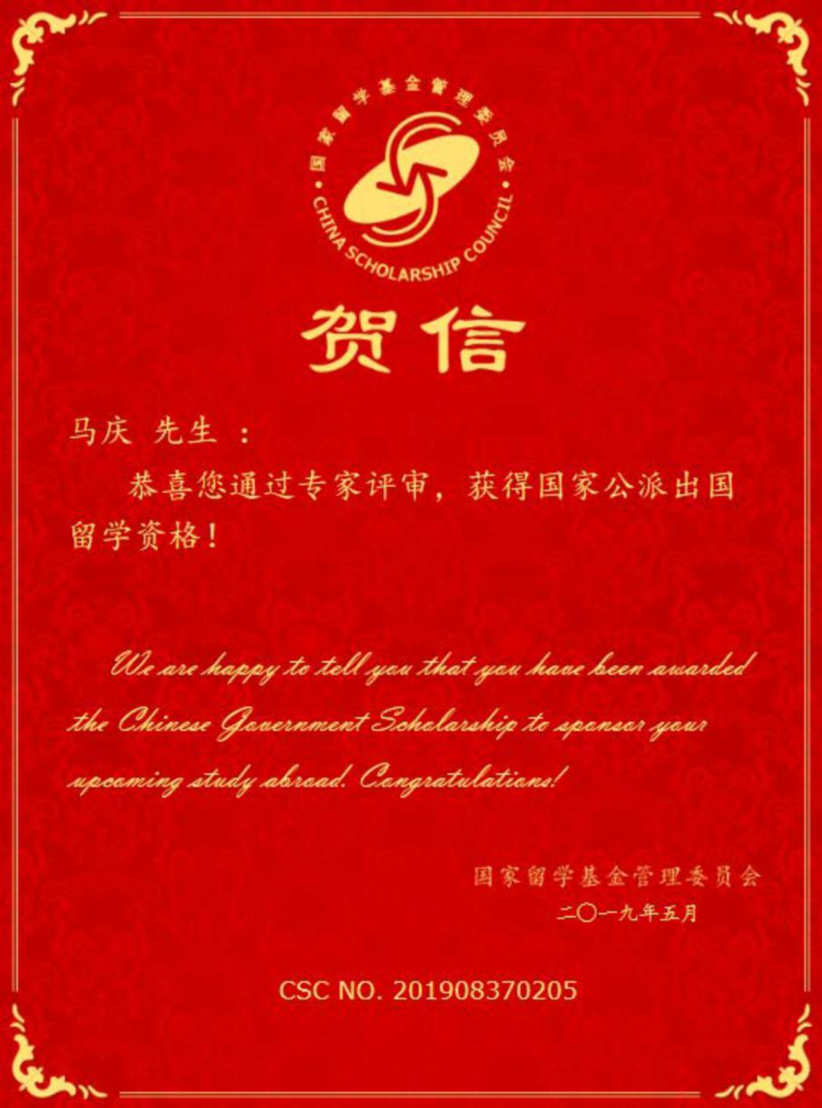 CSC录取通知书